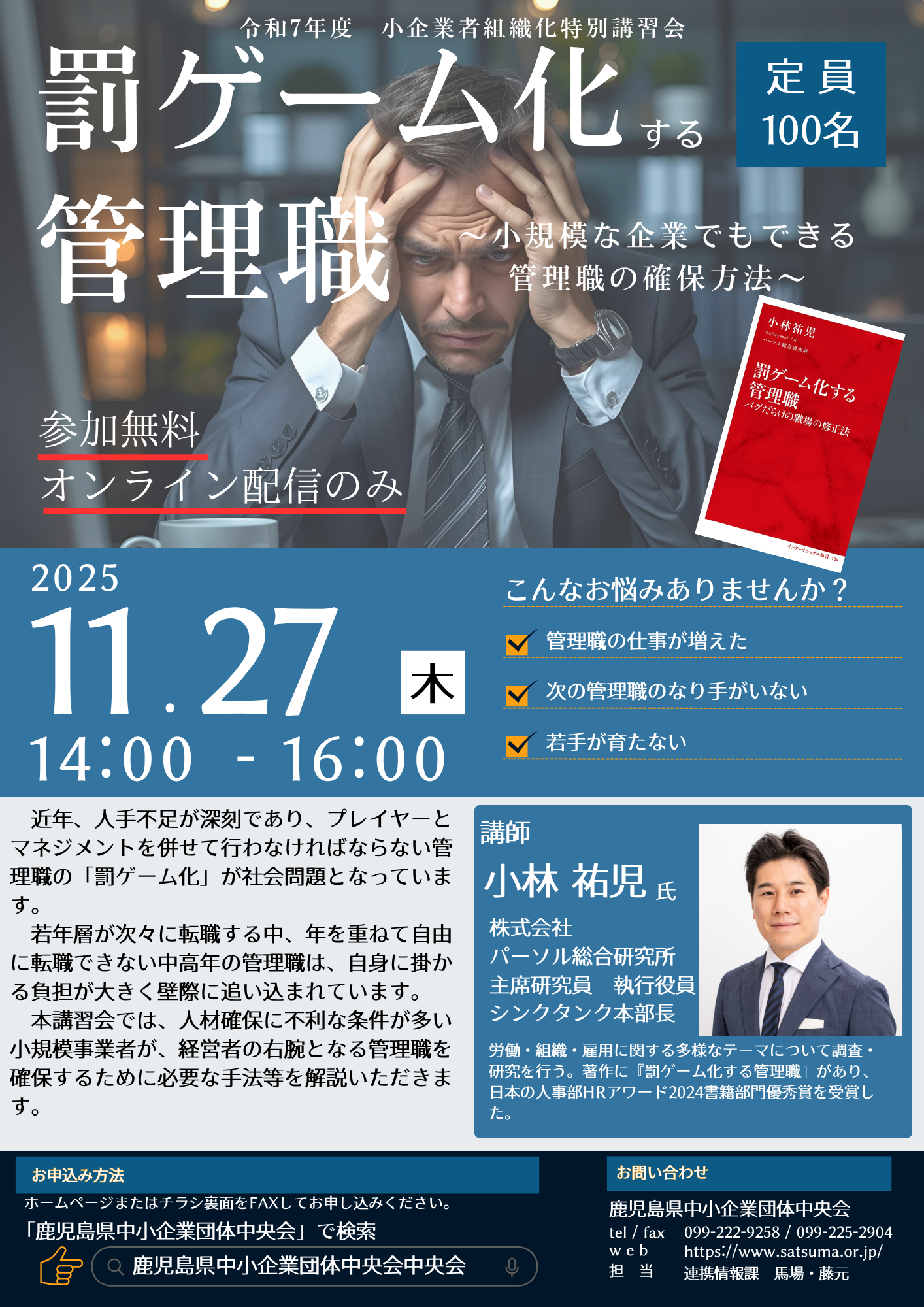 【R07.11.27開催】「罰ゲーム化する管理職~小規模な企業でもできる管理職の確保方法~」