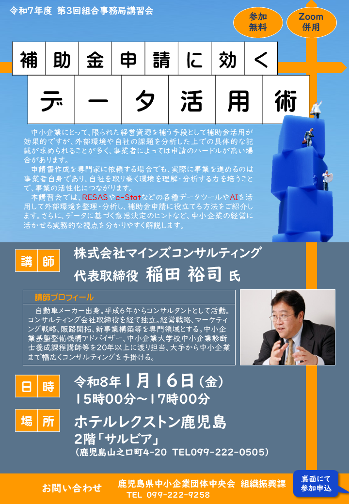 ※ 本講習会は、鹿児島県内の中小企業者を対象として実施するものです。